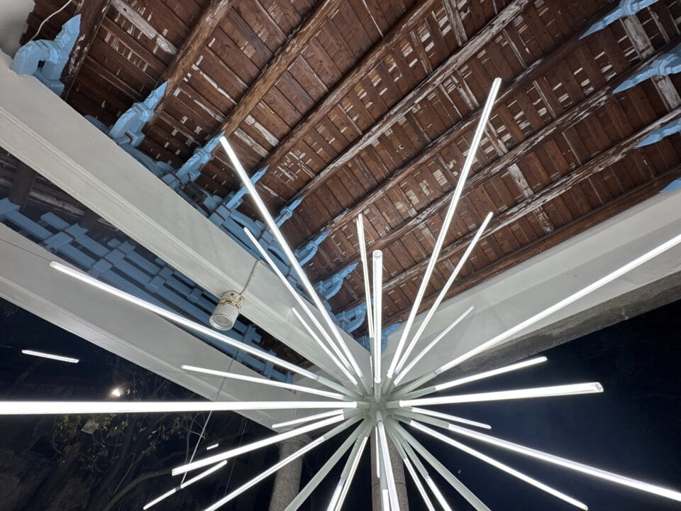 Exploring themes of time and space, “HALO” radiates from within the Xiu De Bai Pavilion, a former Buddhist temple in Yan Shui, Tainan, Taiwan. “Built in 1919, the temple has history tracing back to the Qing dynasty and was pivotal in supporting the community,” Ong says.