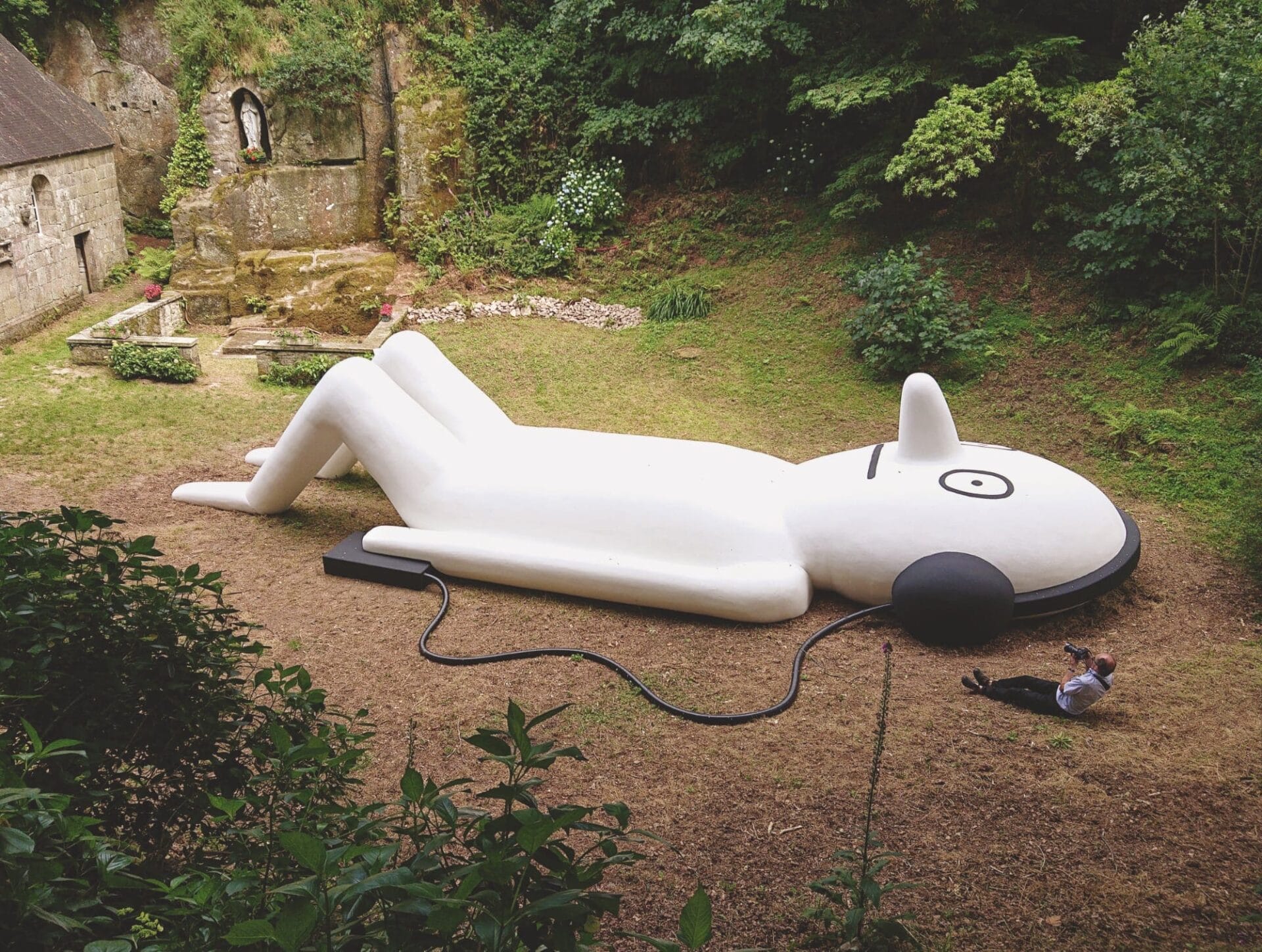 With mushroom-like proportions, pixellated patterns, and a slew of changing hues, ENESS’s work encompasses a central character surrounded by psychedelic trees, mountains, insects, and boulder-like bean bags.