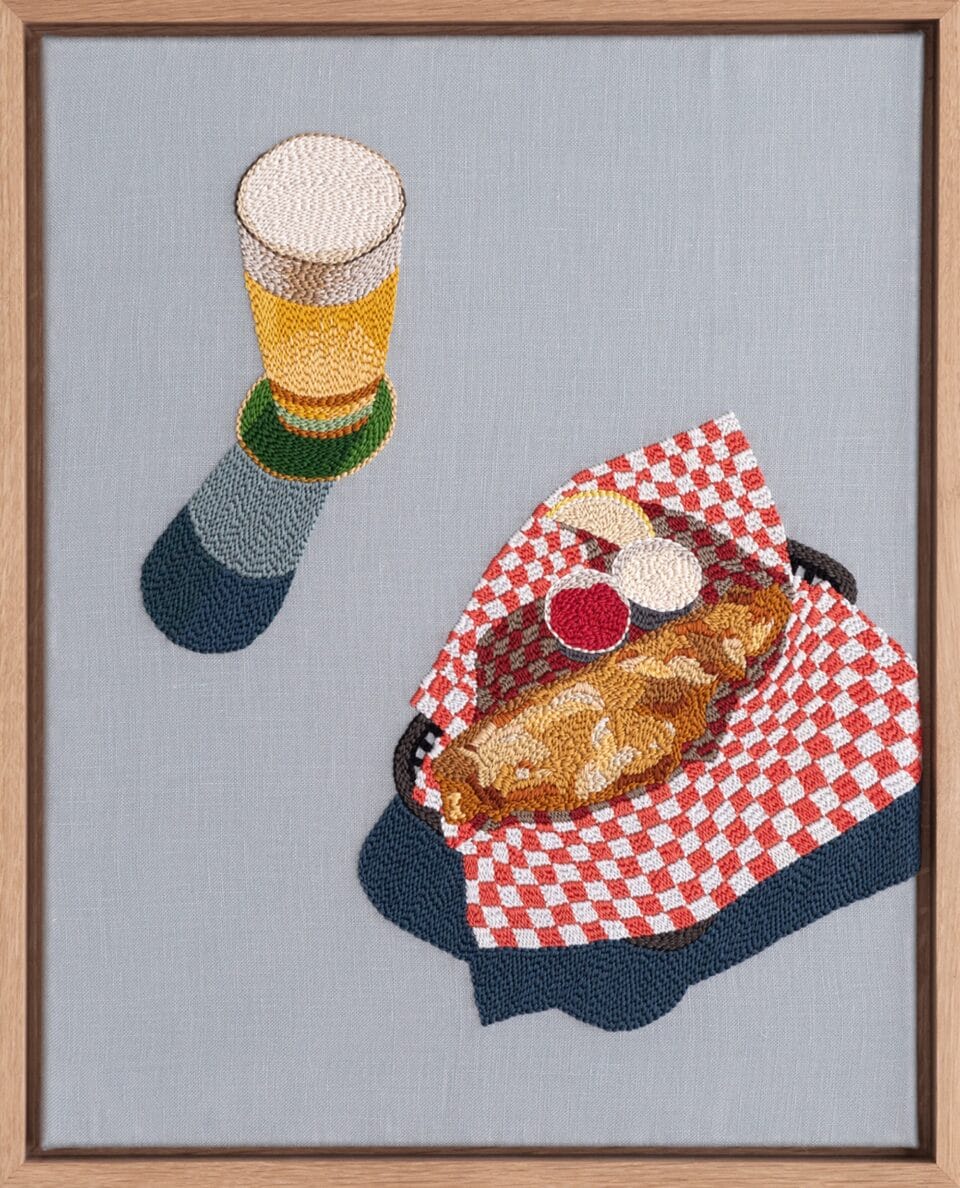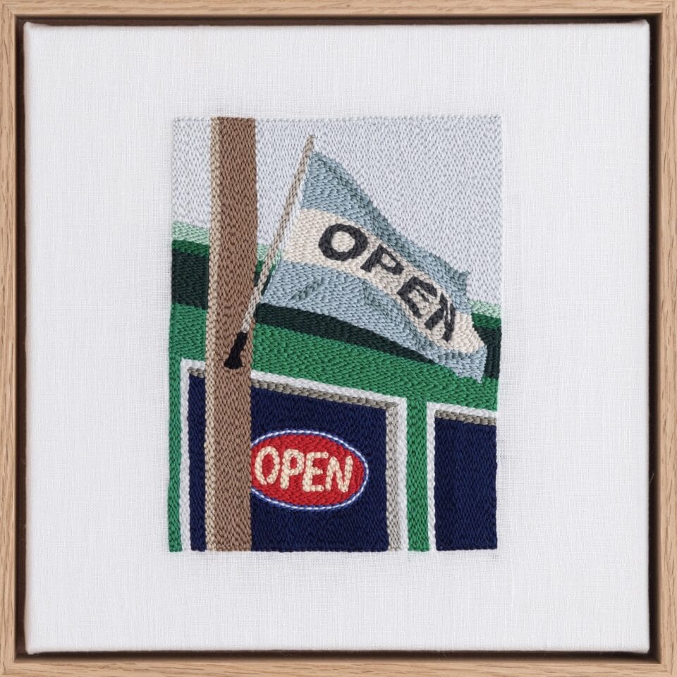 The Toronto-based artist merges her interests in photography, textiles, and design to create vibrant, narrative embroidery compositions. “Through reducing the subject matter in her work to simplified colours, shapes, and fragments, she explores how we recall memories, with a specific interest in travel destinations and souvenirs,” says a gallery statement.