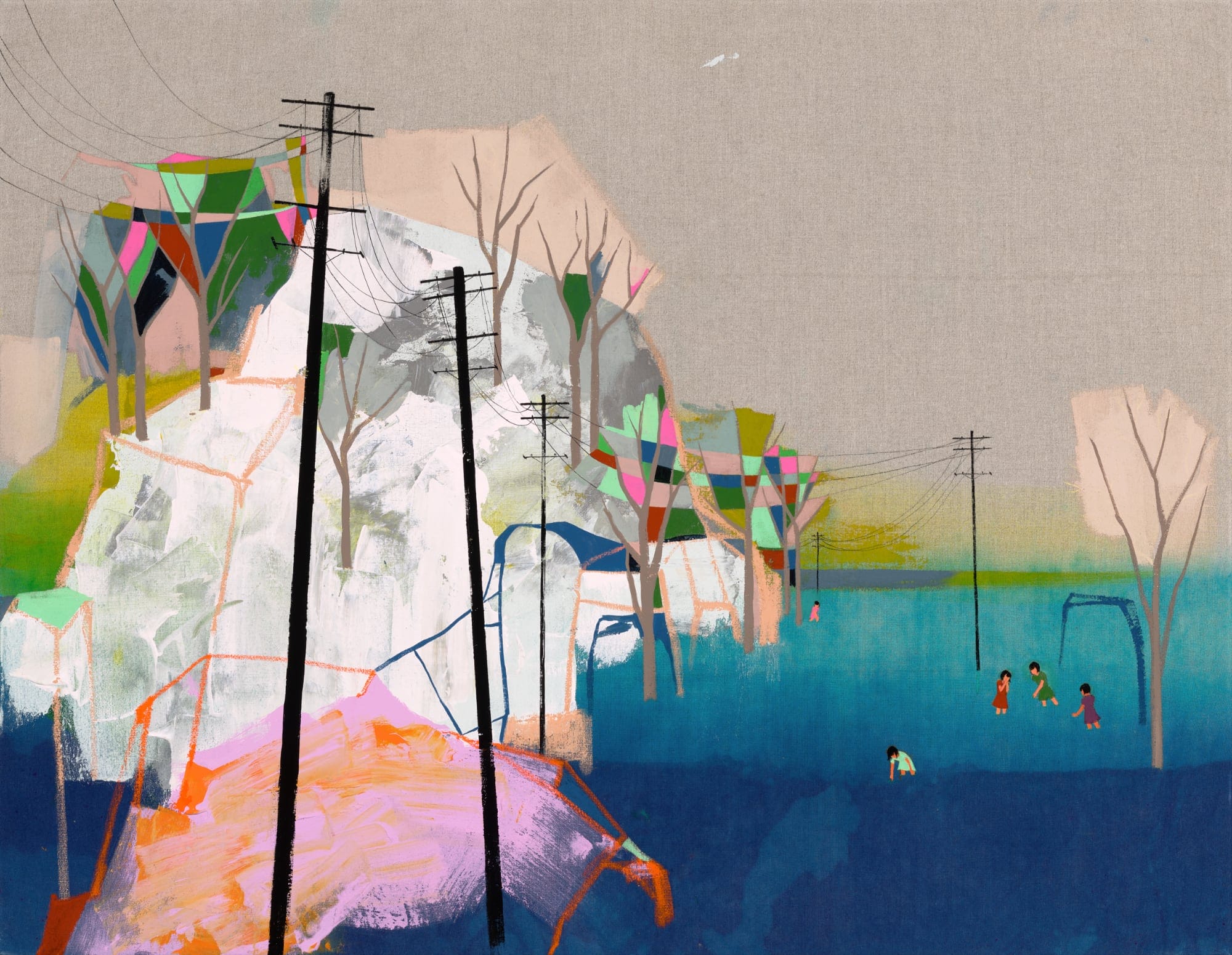 In Past Lives, Seonna Hong excavates the way experiences seem to stack upon each other, sometimes slipping through or re-emerging when we don’t expect them. Through her signature abstract vistas, Hong creates what can be called “memory landscapes,” vast scenes that layer themes of environmental destruction, personal reflections, and the artist’s own Korean heritage.